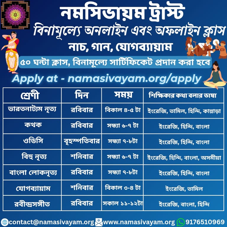Picture speaks 1000 words. Namasivayam Trust created history in bringing the best bharatnatiyam dancers in city of joy West Bengal on 13 December 2023. Thanks to all participants, gurus, parents and audience for making this history and life long memories. Next festival is happening on 14 April 2024, Tamil new year in one of the best place in the universe, jambigezwarar temple, tricy, Tamil Nadu. Panchabootha sthalam for water. Our team is ready to rock.