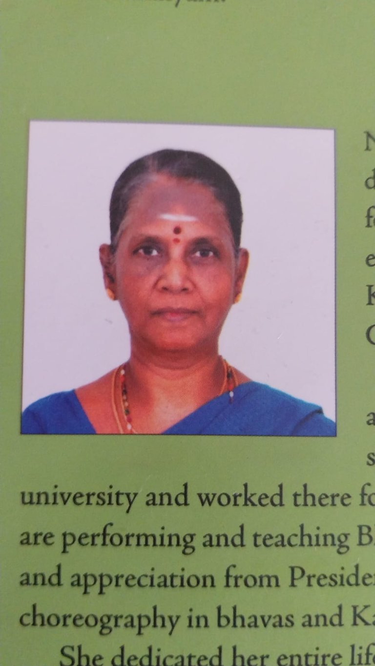 She studied kalakshetra for 7 years and serviced in Gandhigram Trust found by Mahatma Gandhi for 50 years and trained more than 500 teachers and dancers.